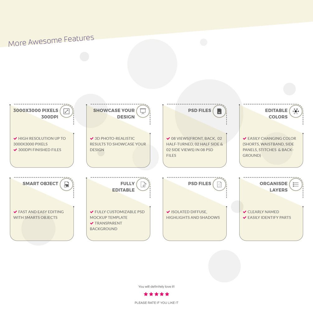 - Easily changing color (Shorts, Waistband, Stitches & Background)