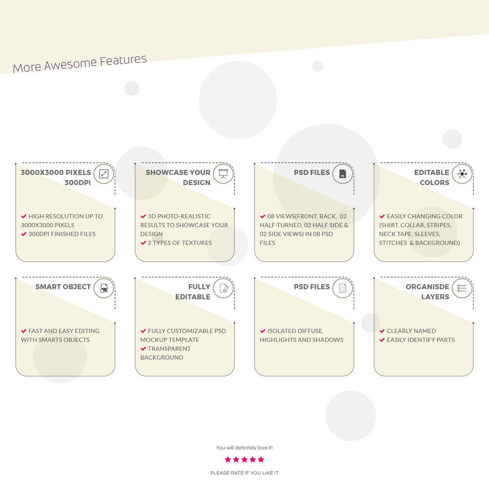- Easily changing color (Shirt, Collar, Stripes, Neck Tape, Sleeves, Stitches & Background)