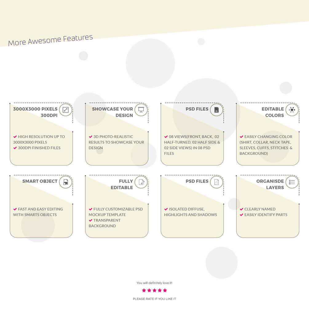 - 08 Views(Front, Back, 02 Half-turned, 02 Back half side & Sides views) in 08 PSD files